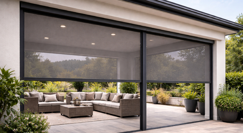 Zip Screens are ideal for balconies, patios, verandas, cafés, and commercial outdoor areas. They help reduce sunlight, block insects and dust, and provide controlled airflow. This system enhances comfort while maintaining privacy and a modern, clean appearance, making outdoor spaces usable throughout the day.
